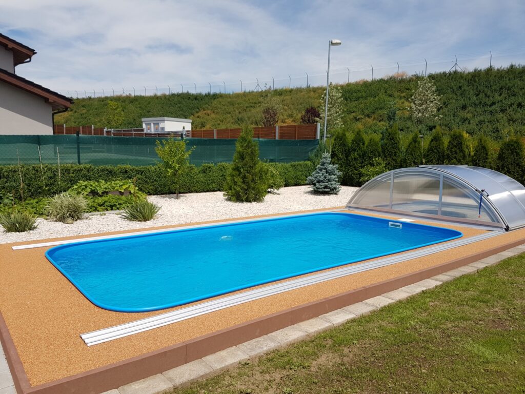 Důležitým prvkem je také možnost doplnění o zastřešení, protiproud, osvětlení nebo automatické dávkování chemie. Komfort užívání se tak posouvá na zcela jinou úroveň a koupací sezóna se může výrazně prodloužit.